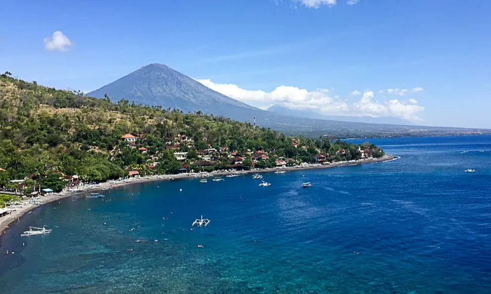 Amed is about a three-hour drive from Ubud on Bali’s east coast. The beach has gray, rocky sand, but the real beauty of Amed lies beneath the sea. Here, you will find magnificent coral reefs, making it a perfect destination for diving and snorkeling.